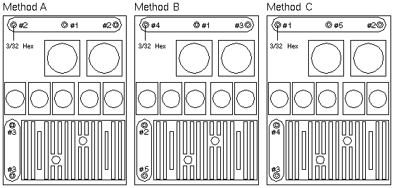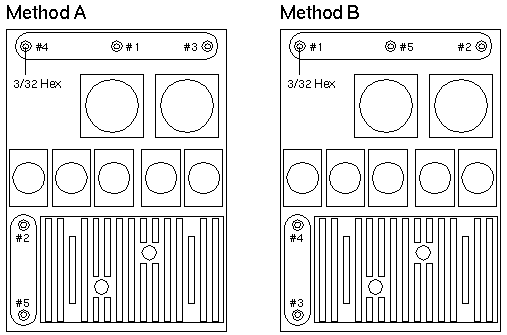 - Tighten screws #1, #2, #3, #4, and #5, in sequence, to 3 in-lb (.34Nm).