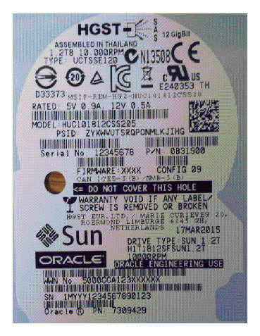 - The Oracle model number on the serial number label is H1T1812SFSUN1.2T.