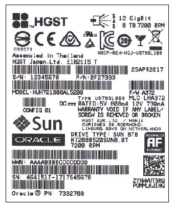 The Oracle Model Number on the serial number label is H7280B520SUN8.0T.