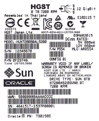 The Oracle Model Number on the serial number label is H7280A520SUN8.0T.
