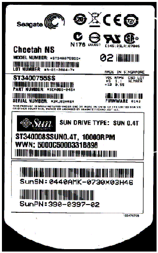 - The Seagate model number on the serial number label is ST3400755SS.