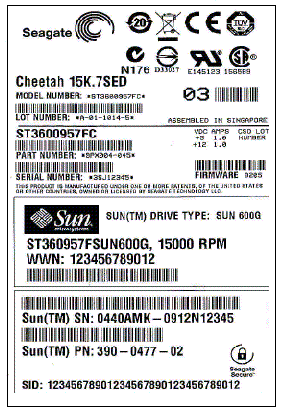 - The Sun model number on the serial number label is ST360957FSUN600G.