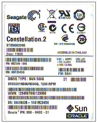- The Sun Model Number on the serial number label is ST95001NSSUN500G.