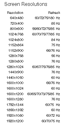 available screen resolutions.