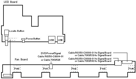 Cable R0350-C0009-01 or 7069540 connects the Signal Board to the Fan Board.