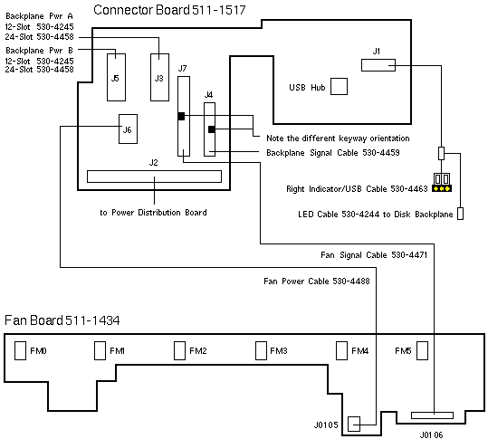 - 12-Slot Backplane connectors J17 and J20 are designated Power A and Power B.