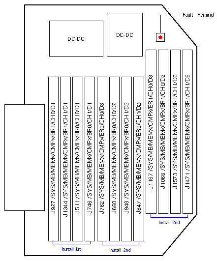 - Install four FBDIMMs in D1 first. Install eight FBDIMMS in D2 and D3 next.