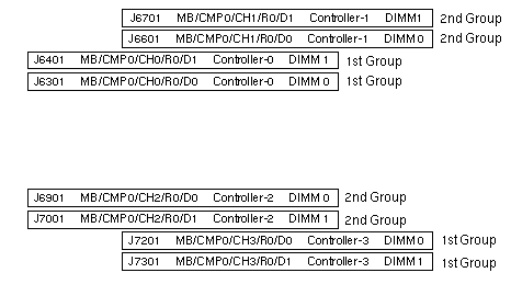 Install memory in Controller-0/3 slots, Controller-1/2 slots, or all eight slots.