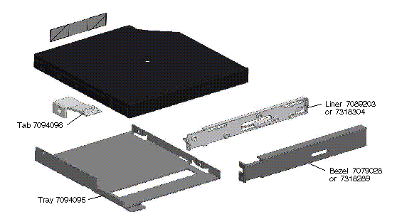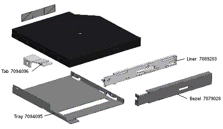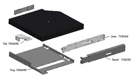 DVD Assembly/FRU DVD 7309891 Tray 7094095 Bezel 7318289 Liner 7318304 Tab 7094096 |