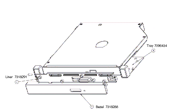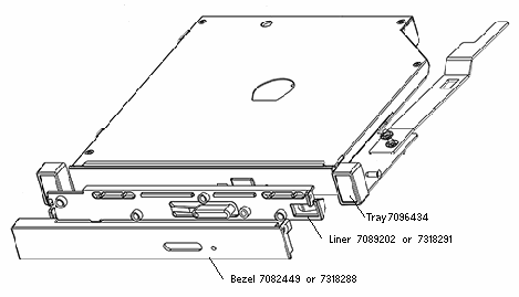 DVD Assembly/FRU DVD 7309891 or DVD 7336333 Tray 7096434 Bezel 7318288 Liner 7318291 |