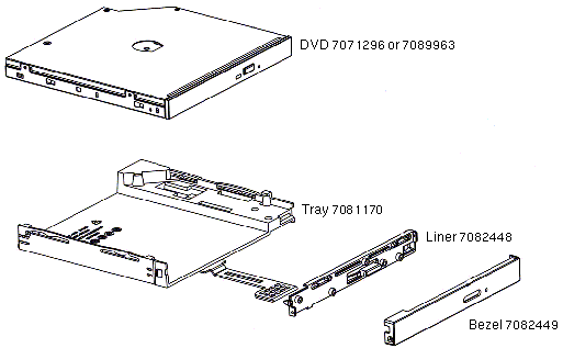 DVD Assembly/FRU DVD 7071296 DVD 7089963 Tray 7081170 Bezel 7082449 Liner 7082448 |