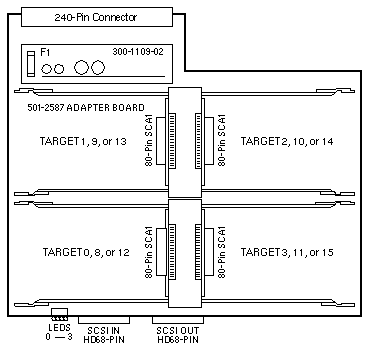 - Backplane Slot 2 sets drive addresses to Targets 0, 1, 2, and 3.