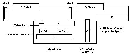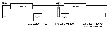 - Flex Cable 371-4876 provides power to the upper backplane.