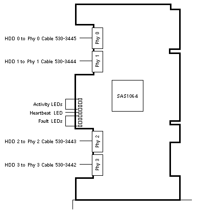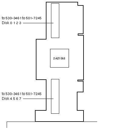 - The HBA connects to the Disk Cable Board 501-7245 and to the SAS Backplane.