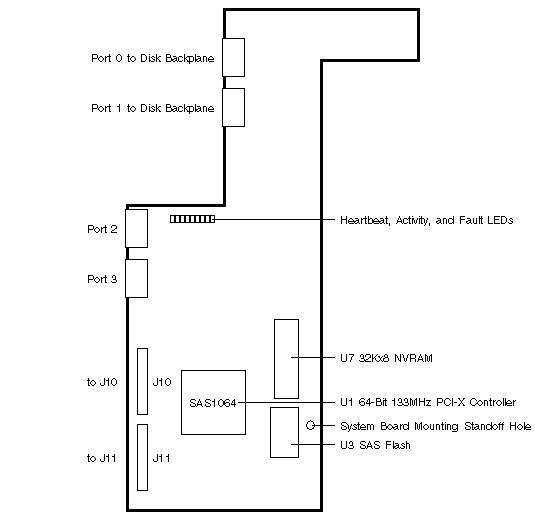 - The HBA plugs into the Netra 210 System Board at J10 and J11.