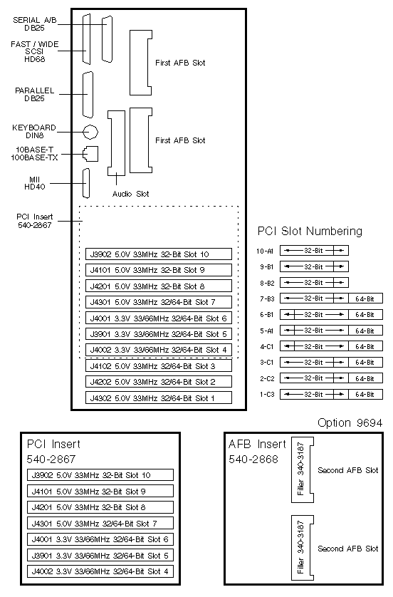 - Three PCI Slots are available when the AFB Insert is installed.