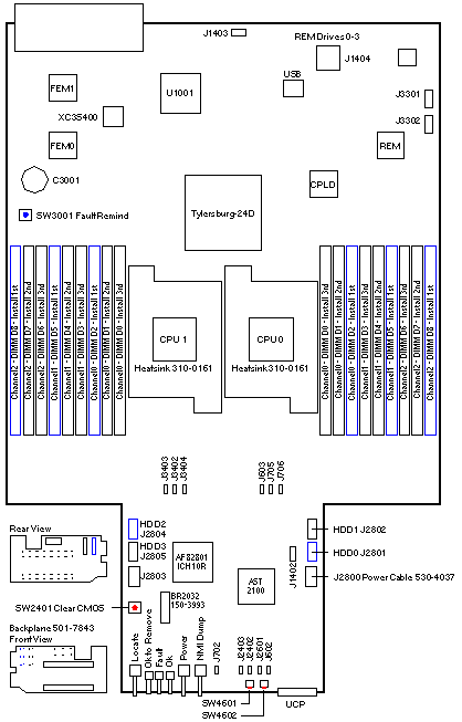 - Install the first DIMMs in CPU0 and CPU1 slots D8, D5, and D2.