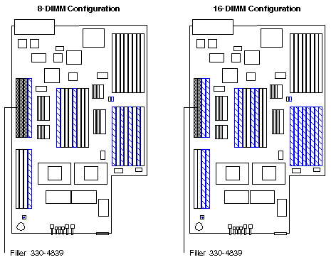 - Sixteen DIMM configurations require Filler 330-4839 in J1501 and J1601.