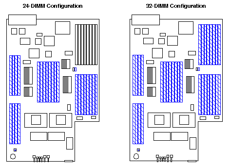 - Supported memory configurations include 8, 16, 24, or 32 DIMMs.
