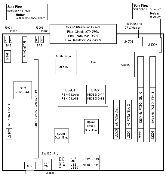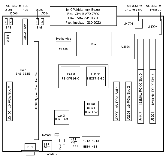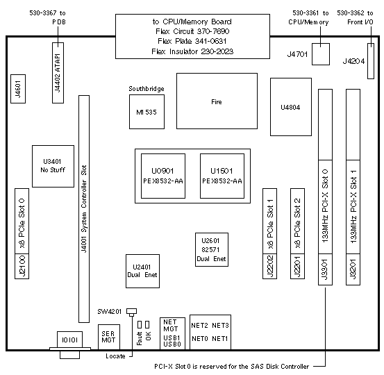 - Serial Attached SCSI (SAS) is external to the pre July 2006 I/O Board 501-6955.