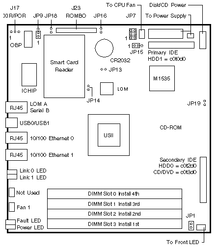 - There is no Sun Fire V100 System Board FRU or UltraSPARC II FRU.
