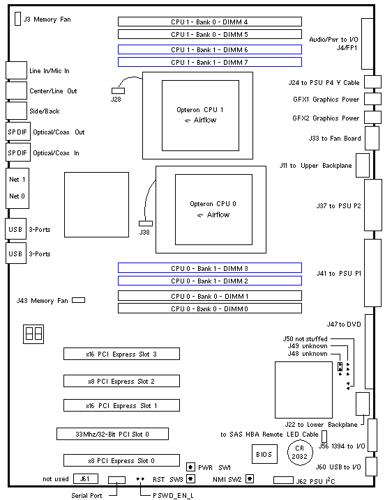 - Install the first CPU 0 memory pair in black slots DIMM 0 and DIMM 1.