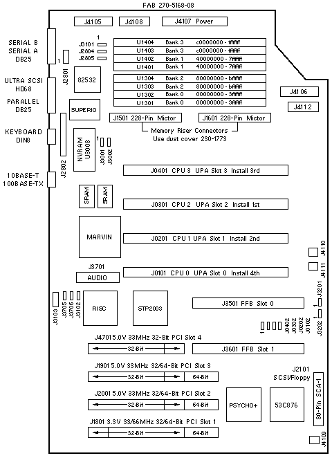 - 64-Bit PCI boards do not fit into Slot 4. Connector J3601 interferes with
