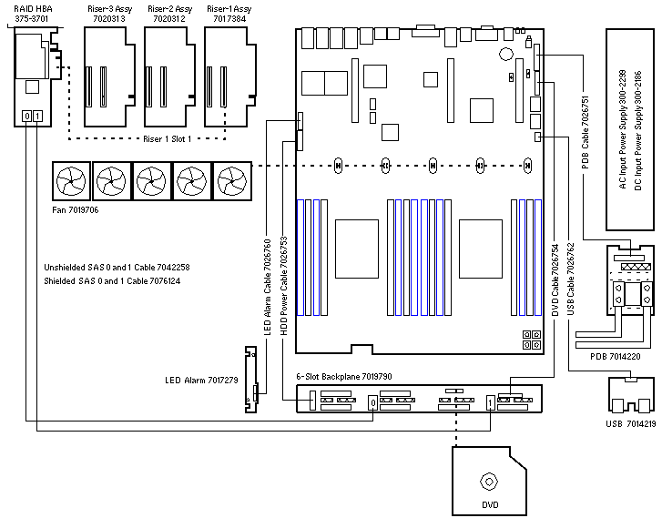 Netra Server X3-2 / Netra X4270 M3 Wiring Diagram6-Slot Disk Backplane with DVD Configuration6-Slot Disk Backplane with DVD Configuration without EU Directive 2002/95/EC 8-Slot Disk Backplane Configuration 8-Slot Disk Backplane Configuration without EU Directive 2002/95/EC 6-Slot Disk Backplane with DVD Configuration