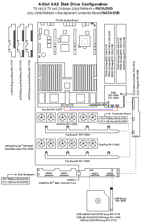 Sun SPARC Enterprise T5140 Wiring Diagram4-Slot SAS configuration8-Slot SAS configuration 4-Slot SAS Disk Drive Configuration