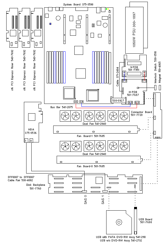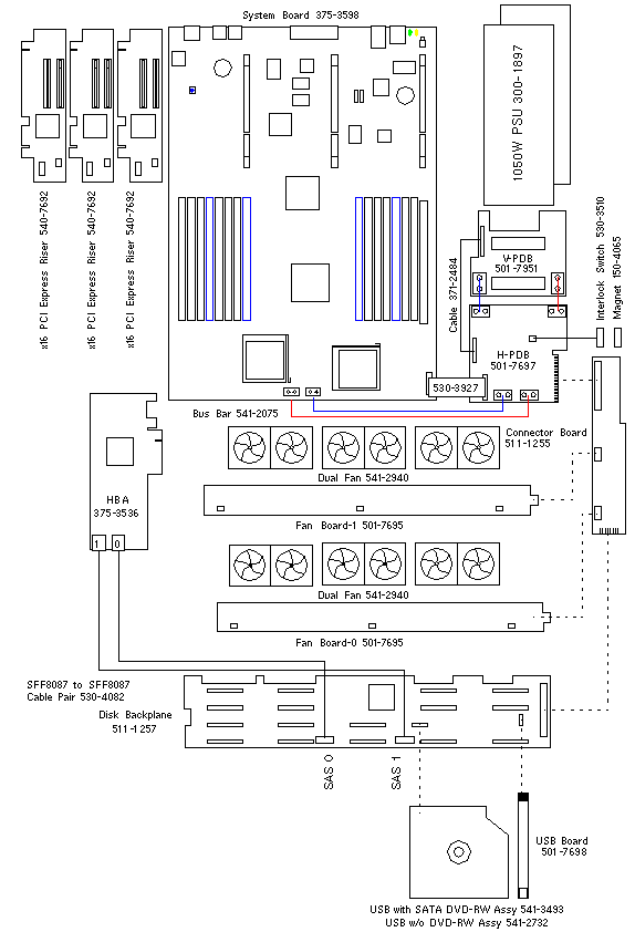 Sun Fire X4250 Wiring DiagramSAS RAID Disk Drive/SATA DVD Configuration