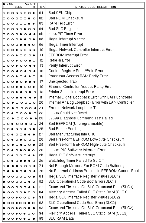 Codes 30-6f indicate a Data or Modem control line error on lines 1-64.