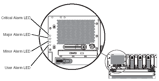 Alarm LEDsThe alarm LEDs are located at the front of the system, along the left side of the front cover.