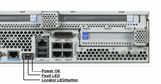 Fault LED | Amber | If on, indicates that service is required. The ALOM showfaults command provides details about any faults that cause this indicator to be lit. |