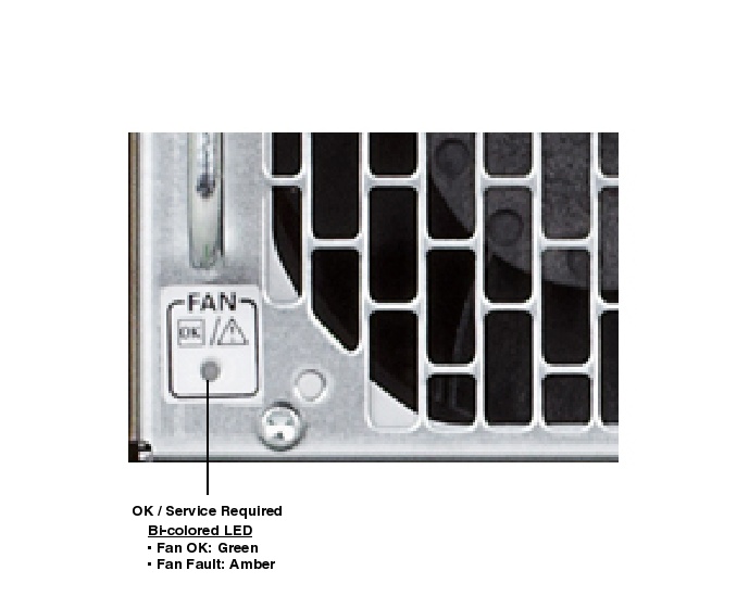 STEADY ON - The system has detected a rear disk drive, fan module, or power supply fault. |