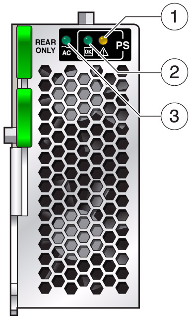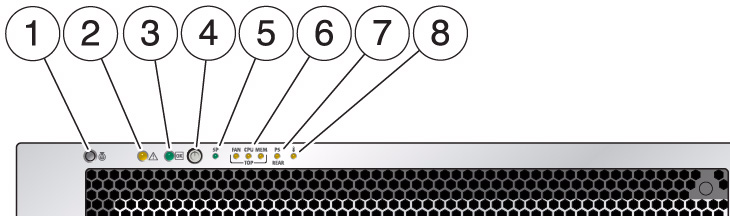The fmadm faulty command provides details about any faults that cause this indicator to light. Under some fault conditions, individual component fault LEDs are lit in addition to the Service Required LED. |