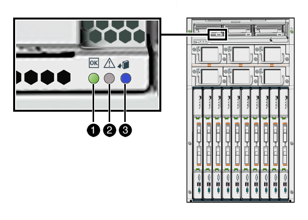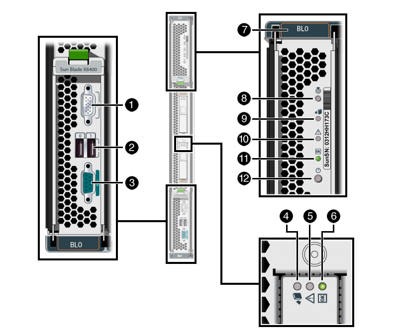 Sun Blade X8400, X8420, X8440 and X8450 Server Module LEDs