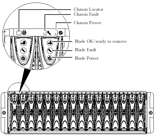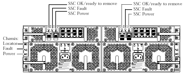 on the SSCs, Power Supply Units, and server blades.