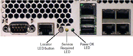 Indicates a fan failure of a rear-access FRU ( a power supply or rear blower). Use the FRU LEDs to determine which FRU requires service.