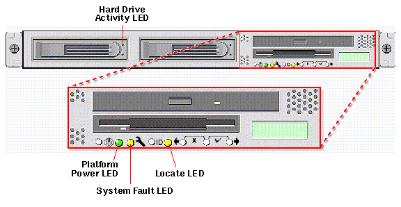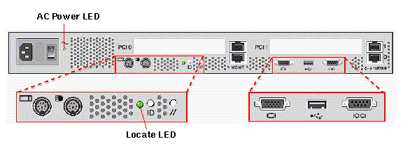 either the front or the back of the server. This LED helps you to identify