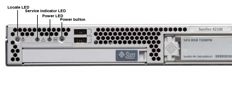 Sun Fire X2100 Front Panel LEDs