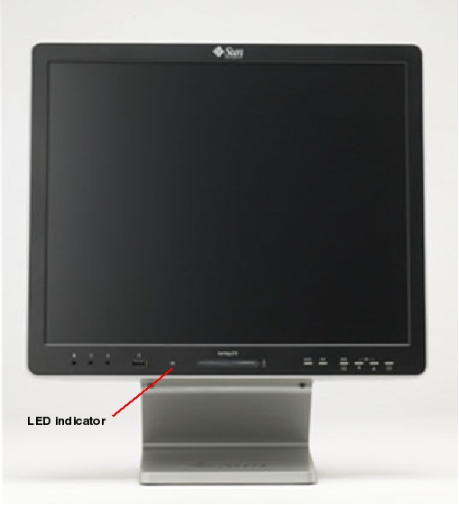 The single front panel system LED is located to the left of the Smart Card Reader. This LED provides a quick visual check on the state of the system.