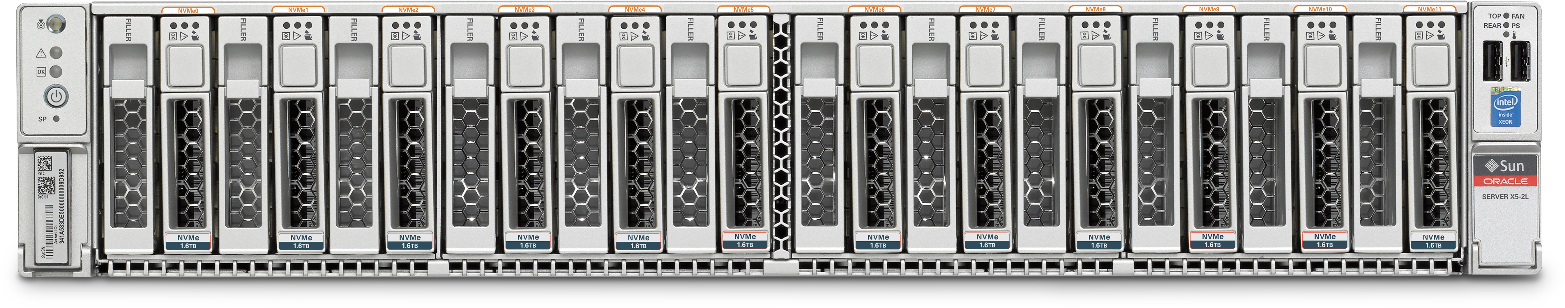 Exadata X5-2 Storage Cell (X5-2L 12-Slot NVMe Backplane) - Front View