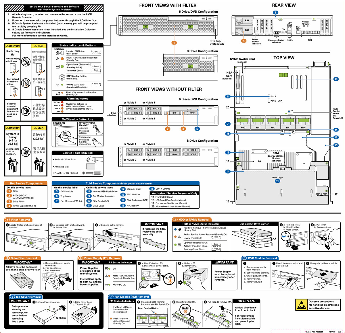 Netra Server X5-2 - External Service Label - DVD, top Cover and Fan Modules (FM 0-4)
