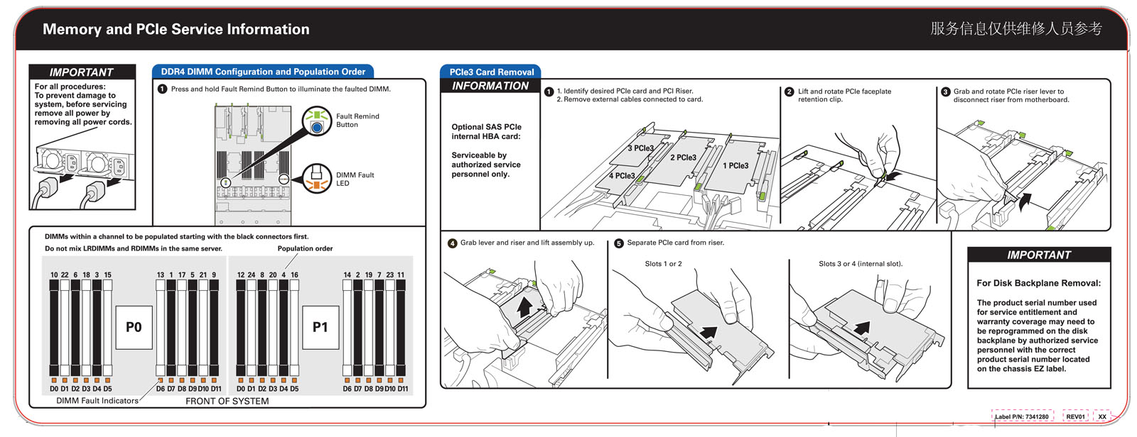 Oracle Server X7-2 - Internal Service Label - Memory and PCIe Service Information