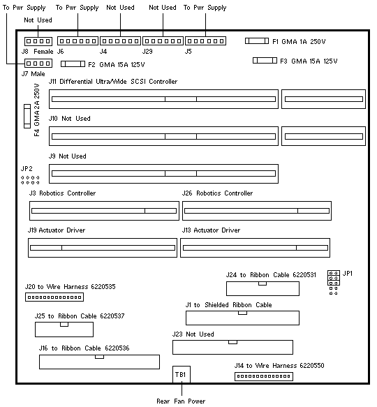- The ribbon cable provides an external HD68 SCSI connector above the