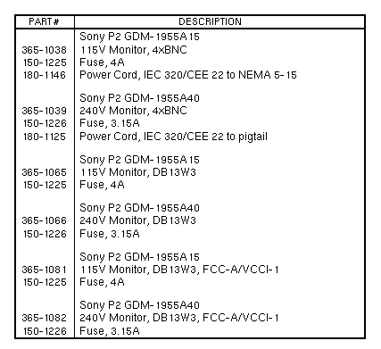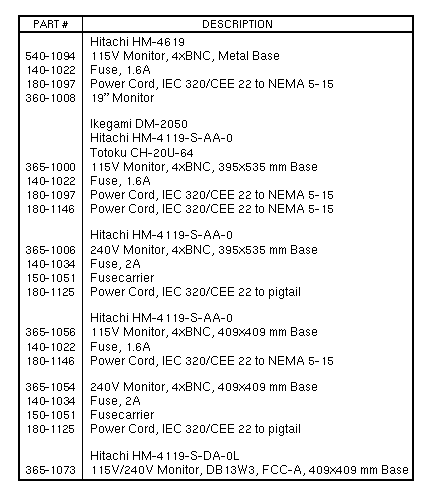 Volume II: Parts Breakdown - Monitor19-inch Color CRTImage Size: 255 mm Horizontal / 280 mm Vertical / 452 mm DiagonalPixel Horizontal Vertical Resolution Frequency Frequency ---------- ---------- --------- 1152 x 900 61.8KHz 66Hz 19-inch Color CRTImage Size: 350 mm Horizontal / 273 mm Vertical / 443 mm DiagonalPixel Horizontal Vertical Resolution Frequency Frequency ---------- ---------- --------- 1152 x 900 61.8KHz 66Hz | ||||||||||||