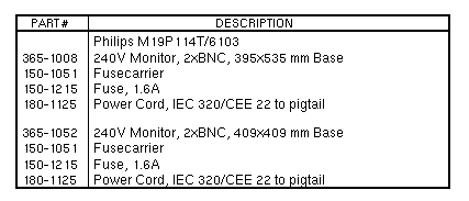 Volume II: Parts Breakdown - Monitor19-inch Greyscale CRT with OCLIImage Size: 350 mm Horizontal / 273 mm Vertical / 443 mm DiagonalPixel Horizontal Vertical Resolution Frequency Frequency ---------- ---------- --------- 1152 x 900 61.8KHz 66Hz | ||||||||||||