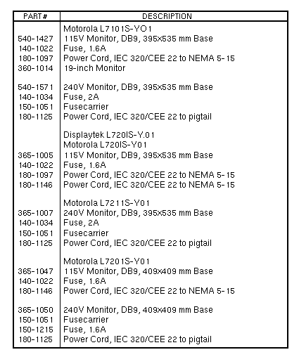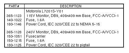 Volume II: Parts Breakdown - Monitor19-inch Hi-Resolution CRTImage Size: 355 mm Horizontal / 279 mm Vertical / 452 mm DiagonalPixel Horizontal Vertical Resolution Frequency Frequency ---------- ---------- --------- 1600 x 1280 89.3KHz 67Hz | ||||||||||||