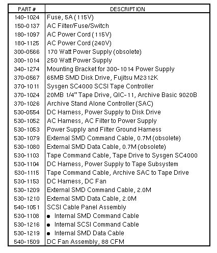 Volume II: Parts Breakdown - Option60 [65MB Disk] 61 [65MB Disk, 20MB Tape] 62 [60MB Disk Expansion] 73 [20MB Tape] Rackmountable Disk and Tape Subsystem | ||||||||||||
