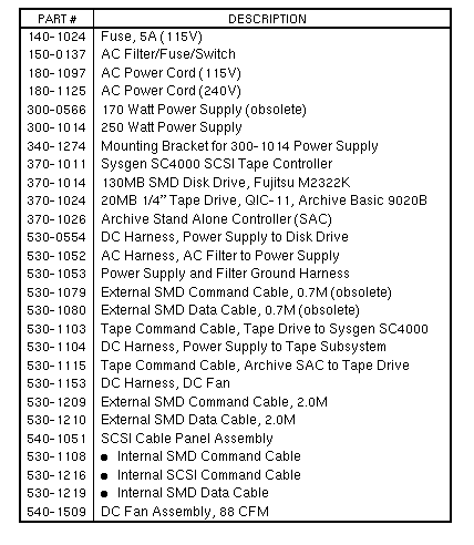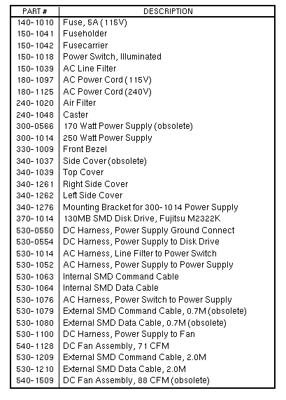 Volume II: Parts Breakdown - Option63 [130MB Disk] 64 [130MB Disk Expansion] 65 [2 130MB Disks] Rackmountable Disk and Tape Subsystem Disk Subsystem 9-Slot Chassis | ||||||||||||